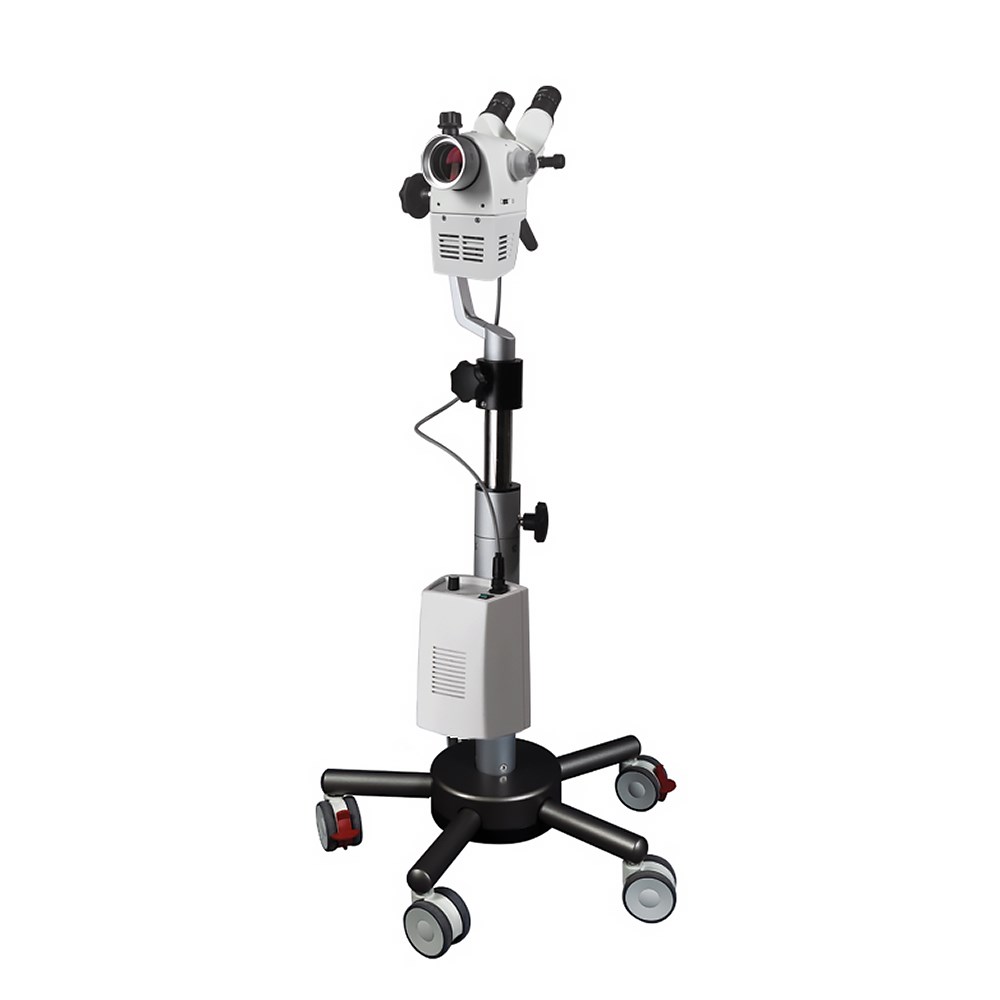 Прямой штатив не занимает много места и удобен при использование в небольших кабинетах. Возможность регулировки высоты оптической головы позволяет подстраивать ее на необходимую высоту для комфортной работы врача.