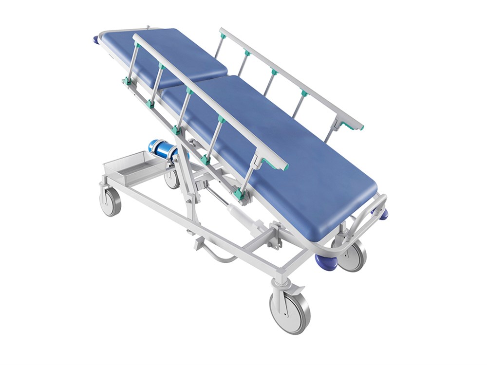 - 🛡️ Безопасность пациента: Тележка оснащена двумя складными боковыми ограждениями, которые предотвращают случайное падение.