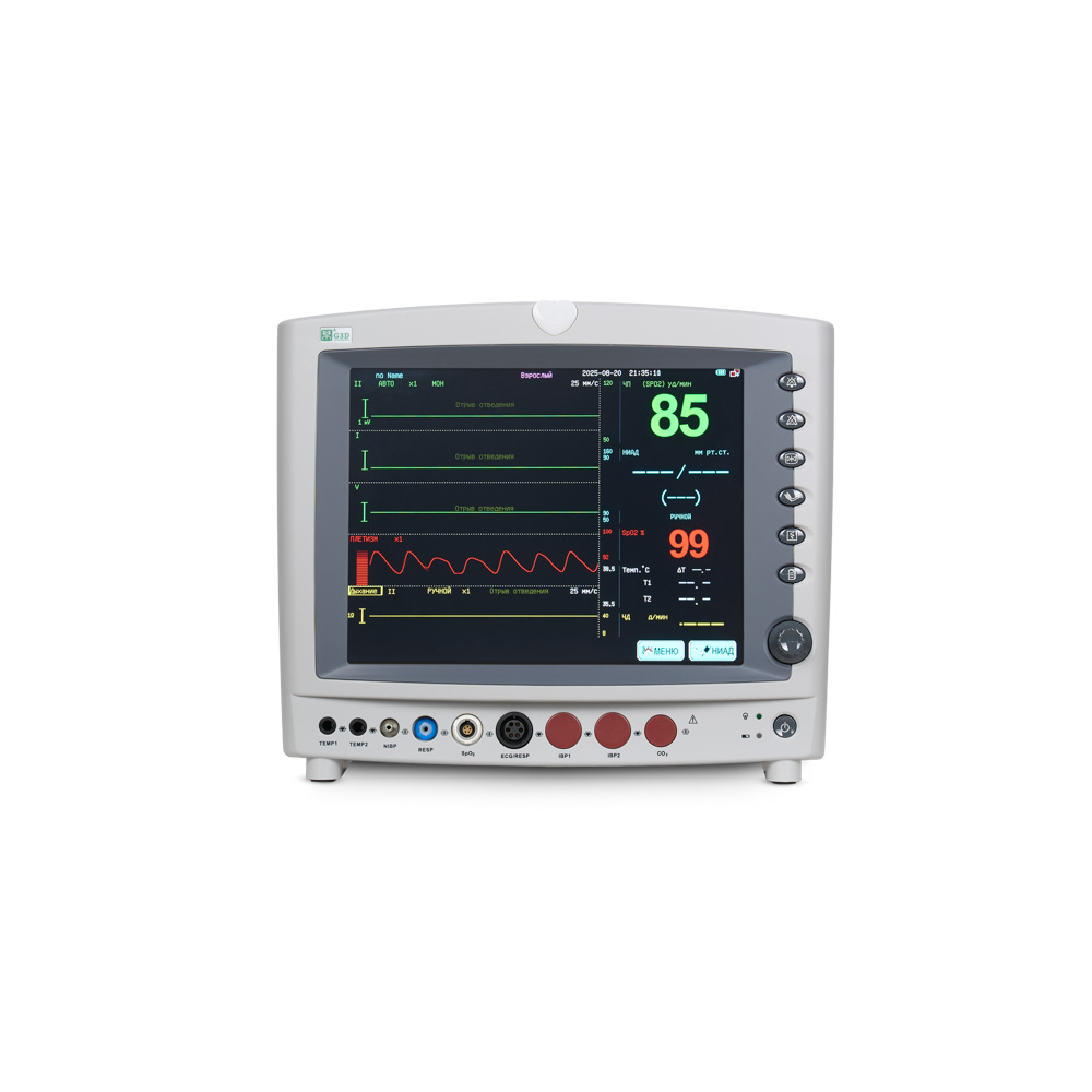 Усовершенствуйте стандарты палатного мониторинга с моделью G3D! Этот прикроватный монитор сочетает в себе все преимущества базовой версии G3F, но с ключевым улучшением — крупным 12.1-дюймовым сенсорным дисплеем. Больше деталей, удобства и наглядности для медицинского персонала.